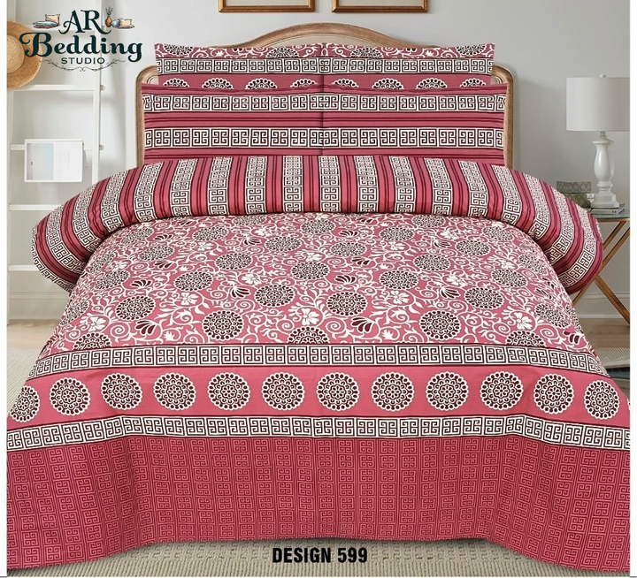 This king size cotton printed bedsheet comes with two matching pillow cases. Made with high-quality cotton, this bedsheet is soft, durable, and adds a touch of style to your bedroom. With its vibrant print, it's sure to liven up your space and provide a comfortable night's sleep.